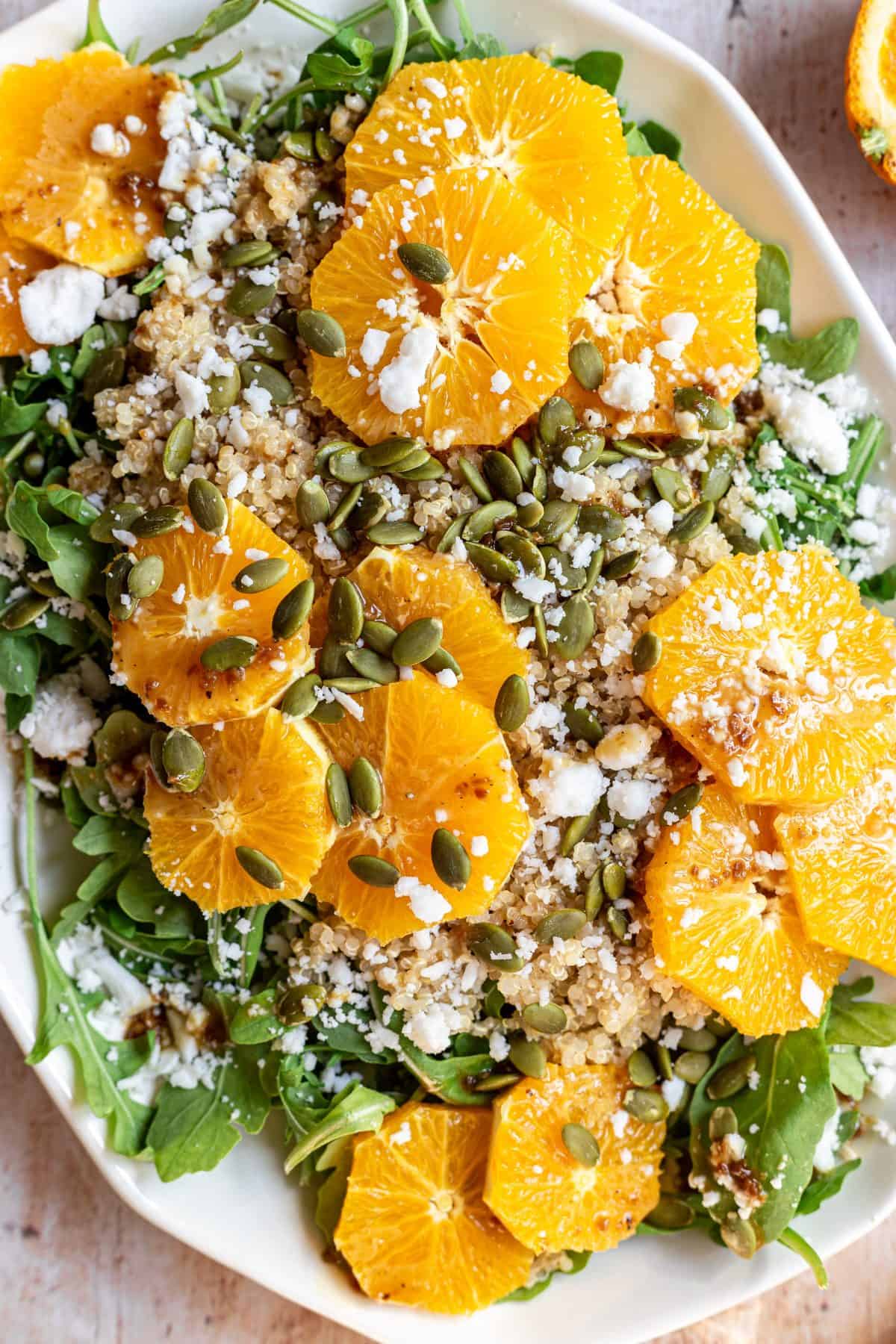 Your salad doesn't have to feel like it jumped straight out of summer - add a cooked grain like quinoa and seasonal fruit like oranges, and you've got yourself a hearty WINTER salad.