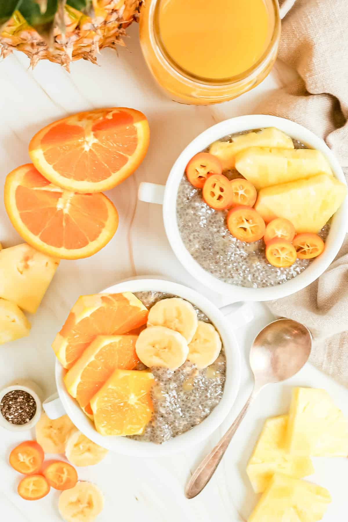 Chia pudding is super healthy and a delicious breakfast. With Omega-3s, protein, fiber and tons of other nutrients from the chia seeds, combined with fruit, plant milk, and other tasty add-ins, you've got yourself an amazing meal.