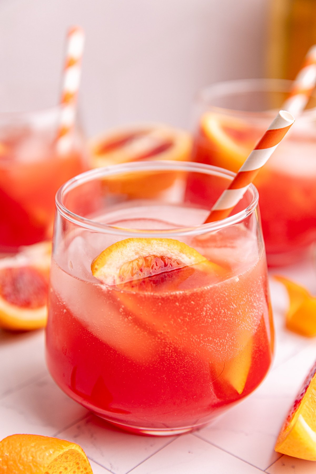 And of course, the garnishes and glassware is what makes the drink! Serve in a wine glass and add an orange wedge for all the vibes!