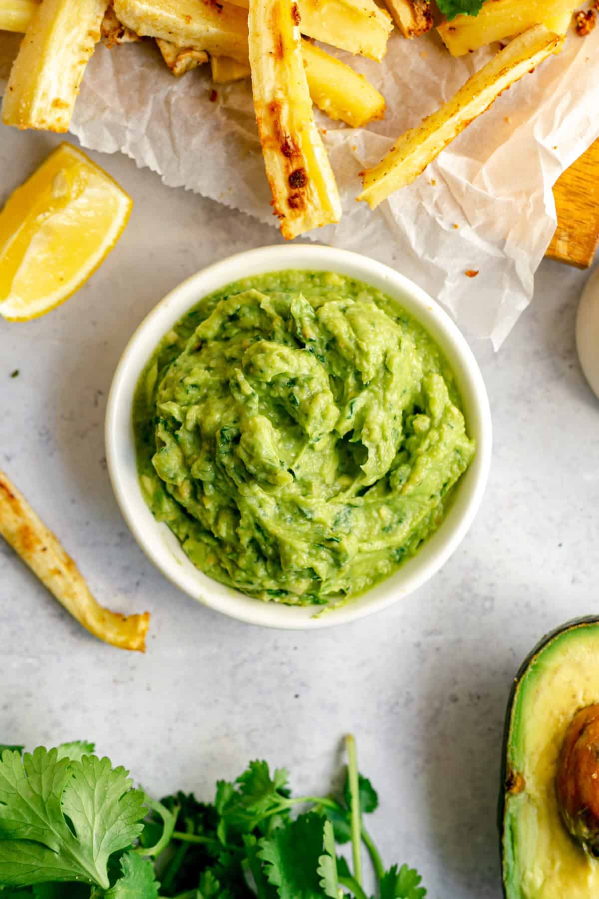 I love eating this dip with my Garlic Parsnip Fries. Both have garlic and cilantro flavors going on - such a perfect pair.