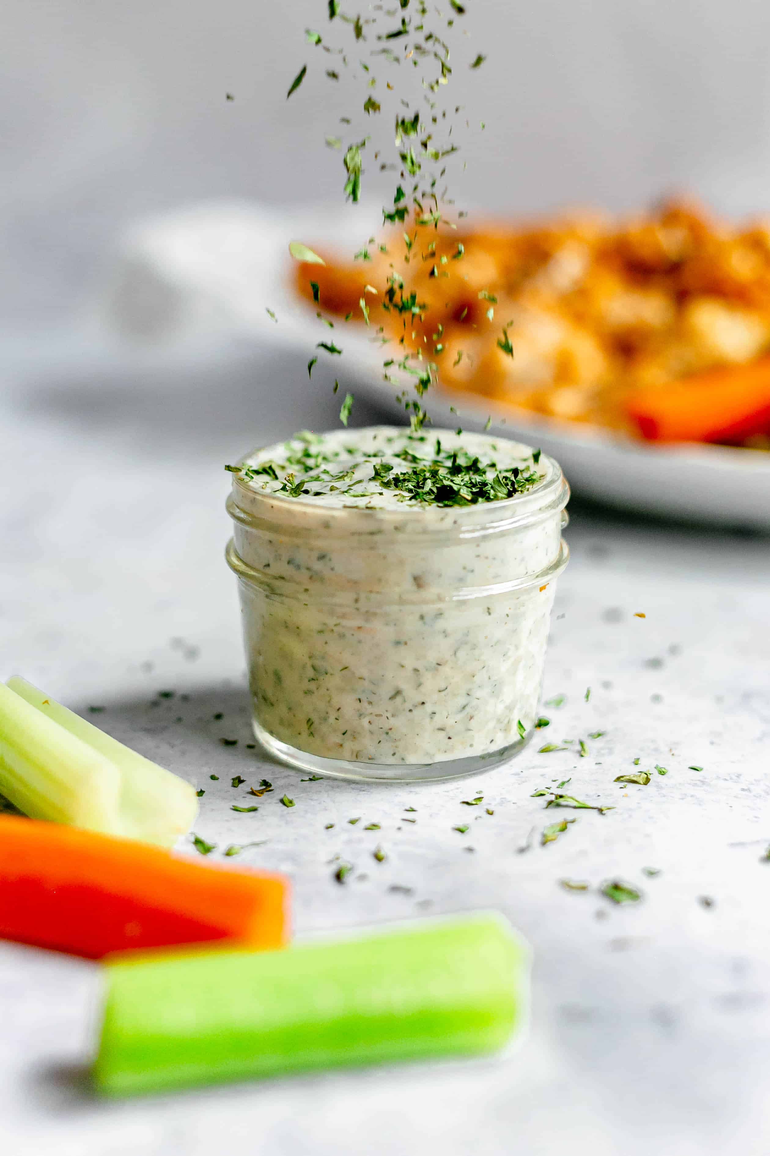 Serve this plant-based ranch dip exactly how you would eat non-vegan ranch!
