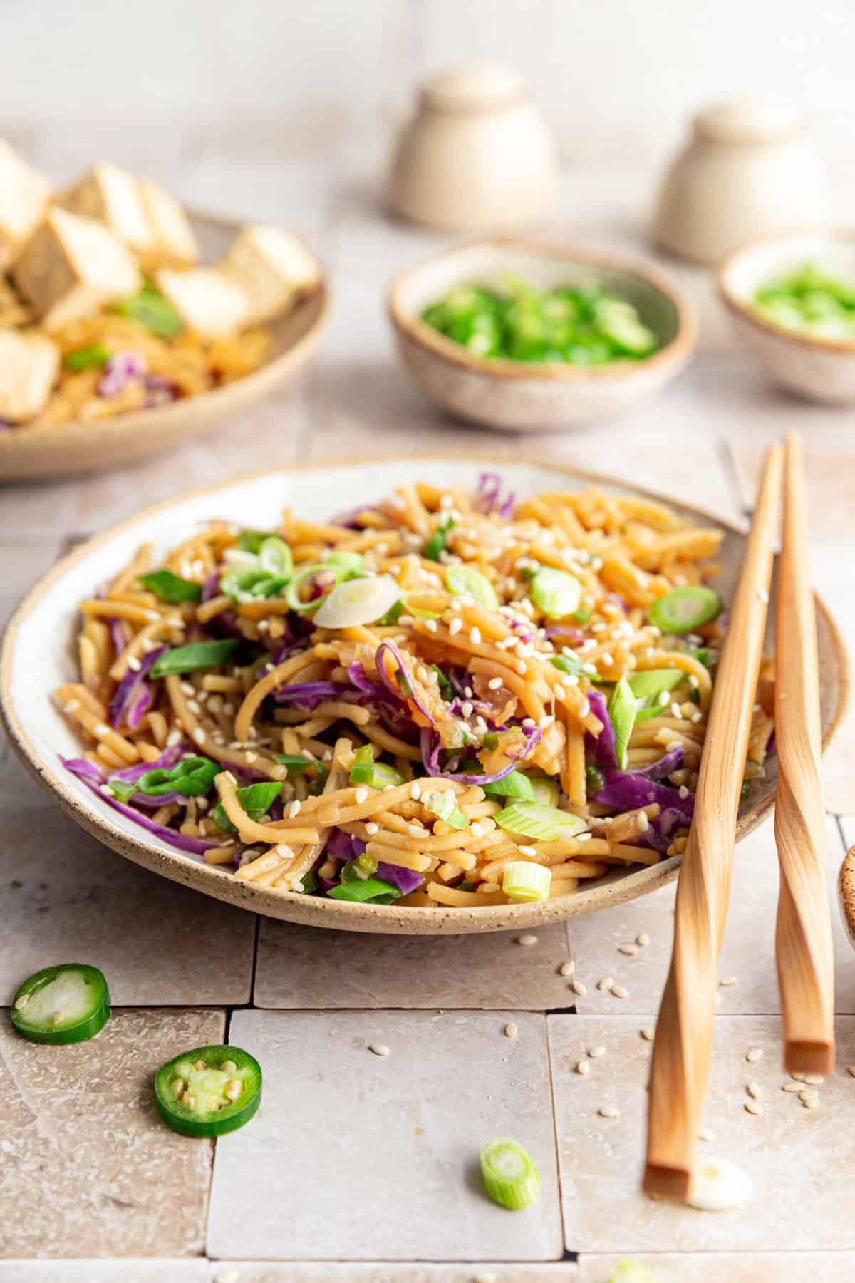 - Serve the pasta with the tofu and sprinkle with sesame seeds. Enjoy!
