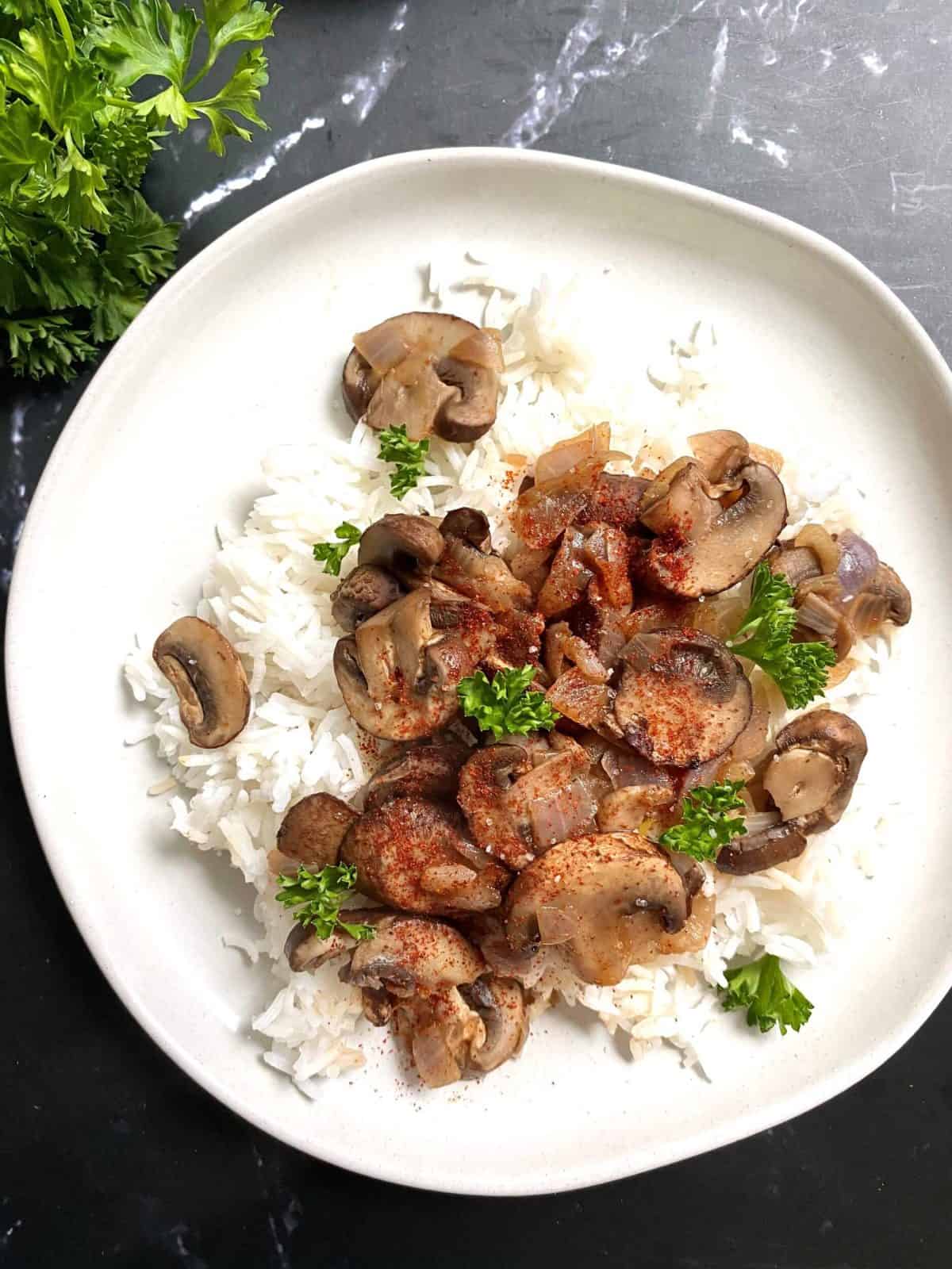 - Basmati Rice: Hungarian Paprika Mushrooms are usually served with rice. I used basmati rice for this recipe, but you can serve your mushrooms with another type of white rice, or brown rice. Or even quinoa!