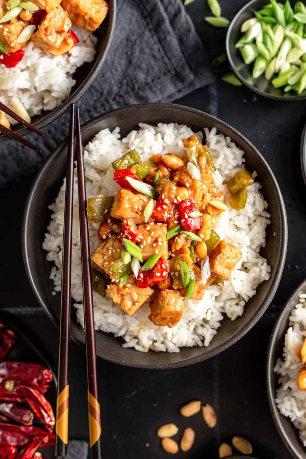 Kung Pao is a Sichuanese dish, traditionally made with cubed chicken. But in this plant-based version, we're using tempeh instead.