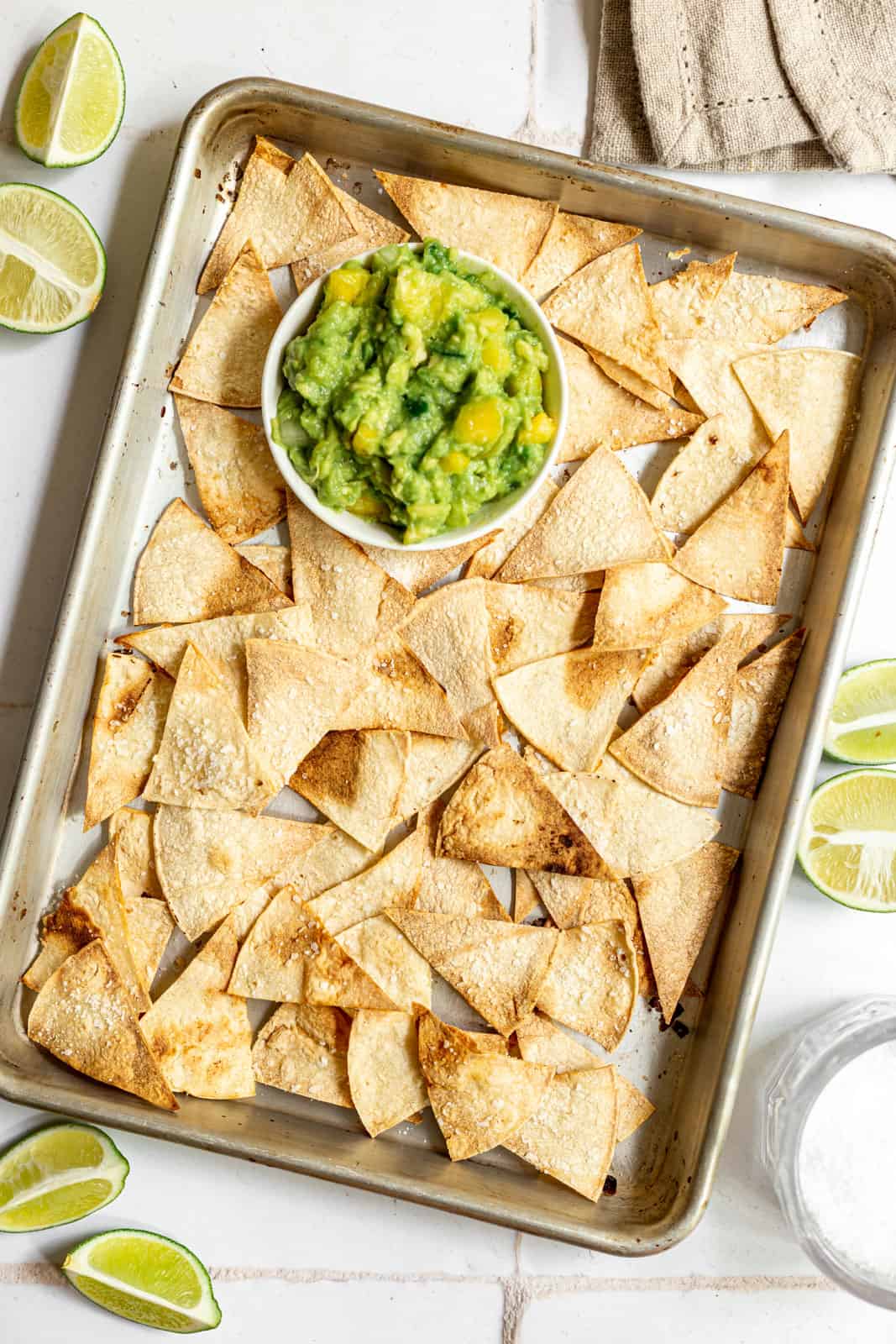 • Dietary needs - tortilla chips are usually vegan and naturally gluten-free, but they're also usually fried in oil. There's no oil in these homemade chips - all the salt and crunch of classic tortilla chips, but without the oil