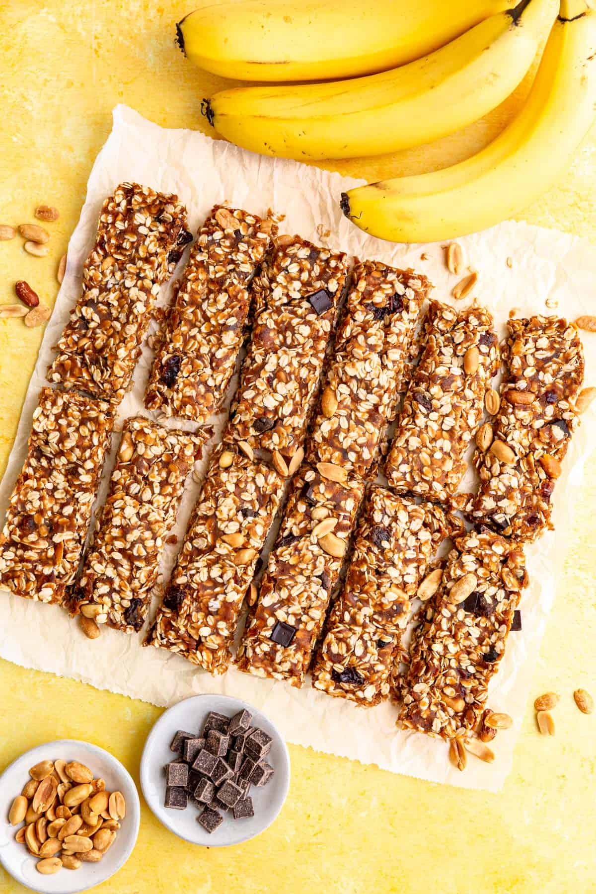 Just reading the name of these bars makes my mouth water. One of my FAVORITE food combinations is peanut butter and banana. My go-to dessert is frozen bananas with peanut butter drizzled on top.