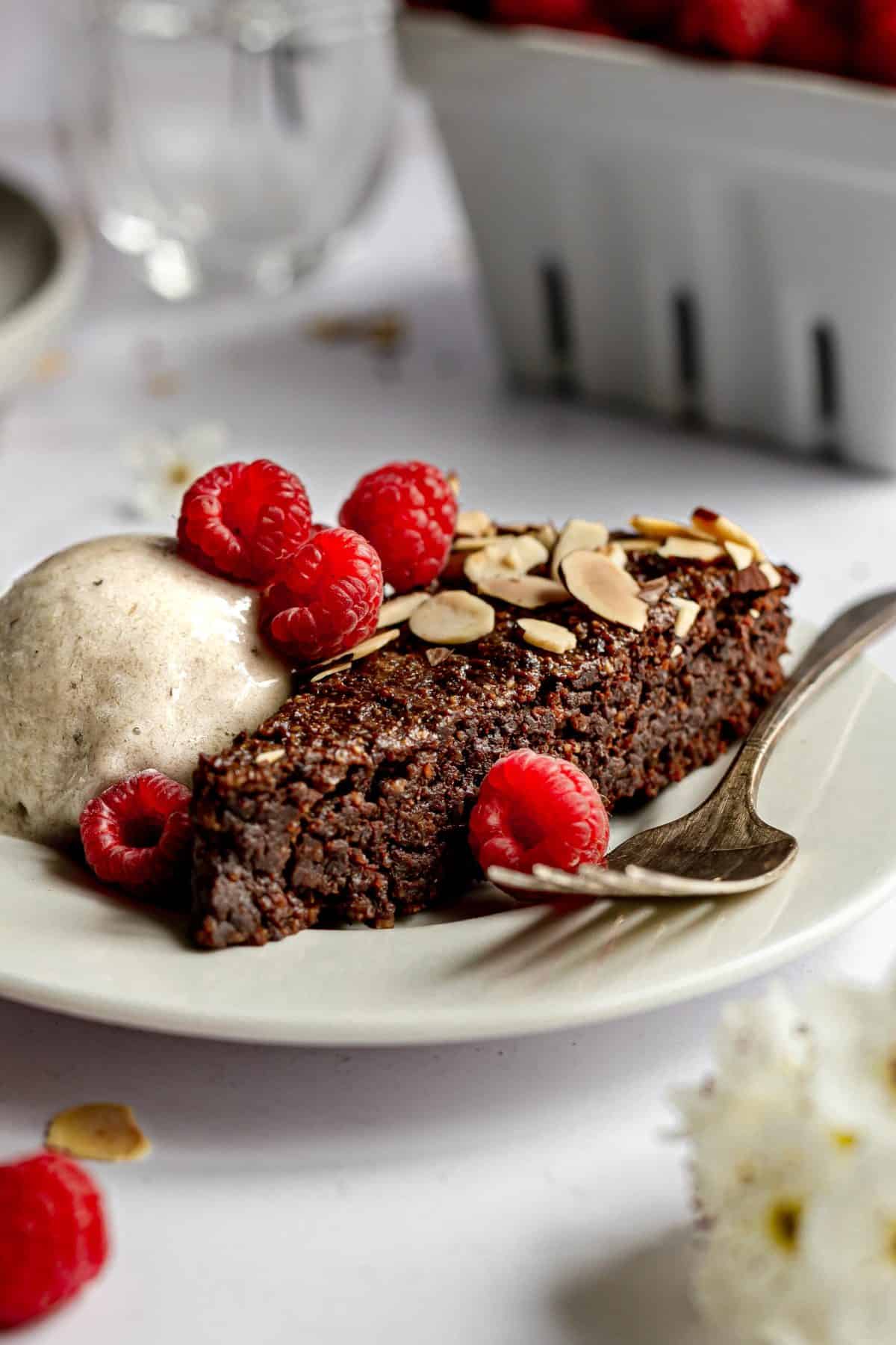 I'm not a huge chocolate person but this Plant-Based Chocolate Almond Torte is a seriously delicious dessert. It is basically one giant fudge brownie.