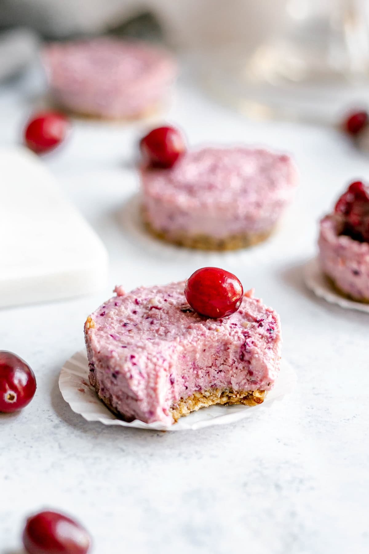 It's sometimes hard to make plant-based cheesecake taste like the 'real thing'. But the tang from the cranberries adds tartness to these cheesecakes and helps them feel more like traditional cheesecake.