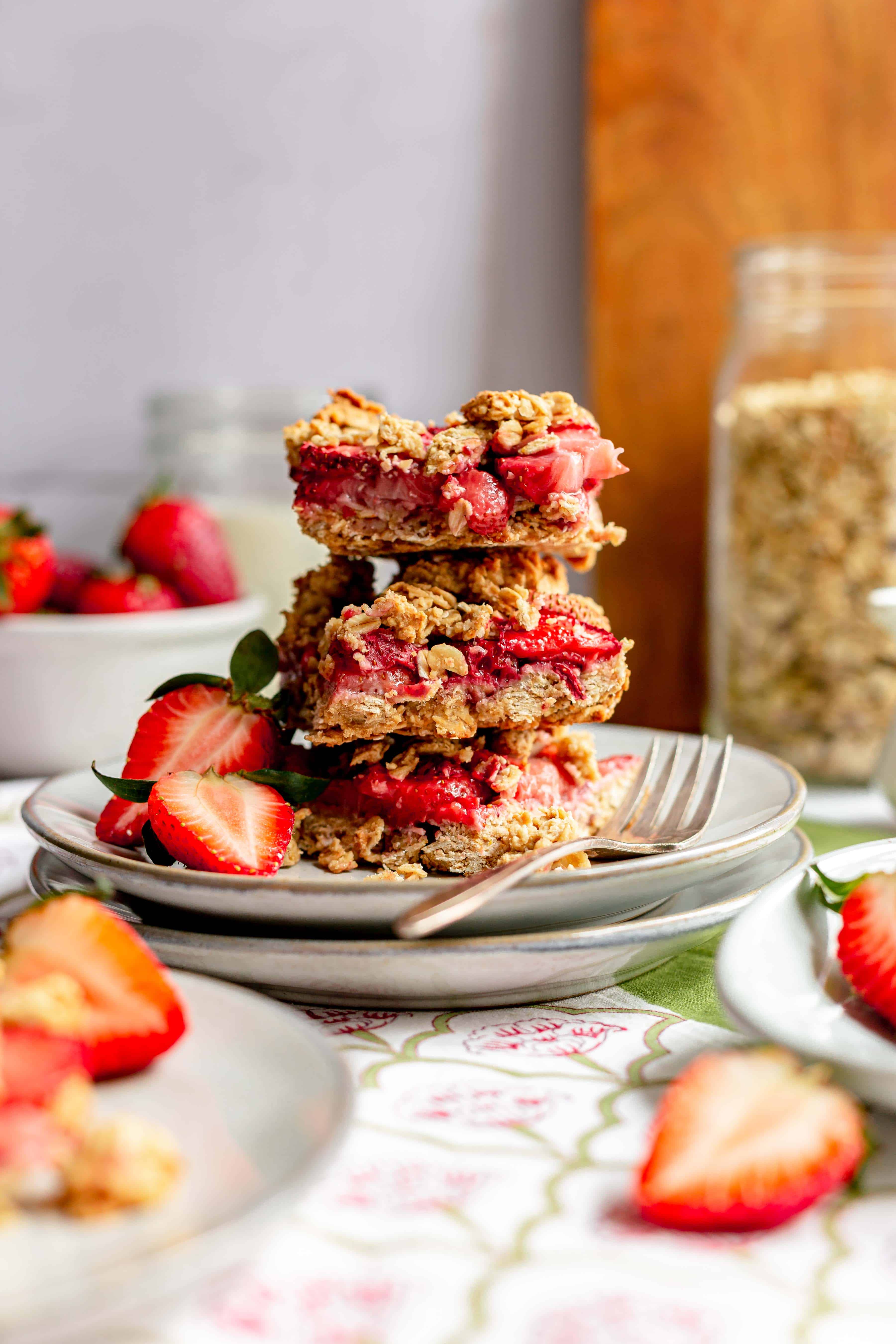 These Plant-Based Strawberry Crumble Bars are an easy vegan and gluten-free dish! Serve for breakfast or dessert - these crumble bars take just 45 minutes to make.