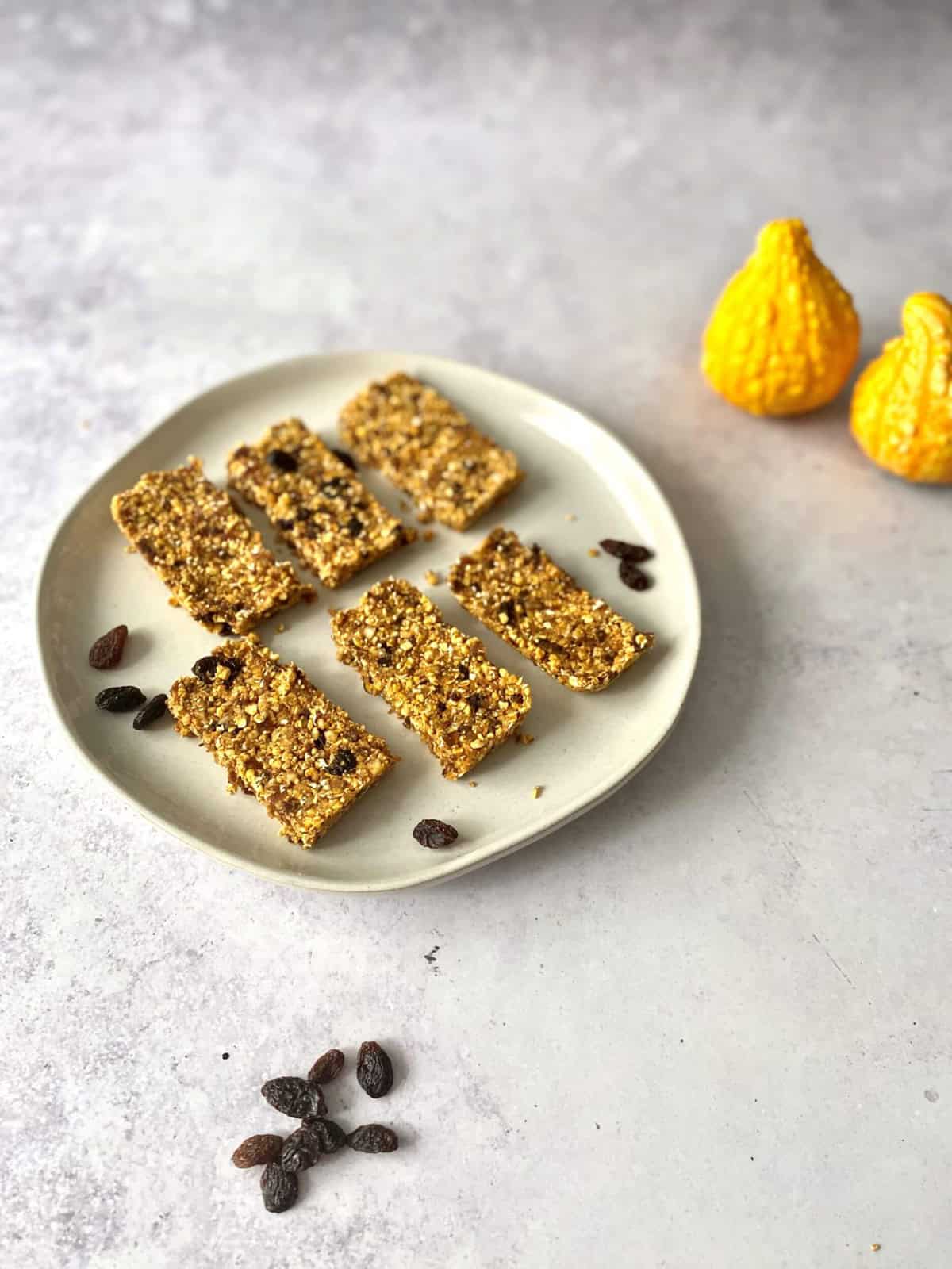 Pumpkin Pie Granola Bars are healthy fall treats, full of pumpkin flavor and packed with nutrients. Perfect to make ahead and fuel your day.