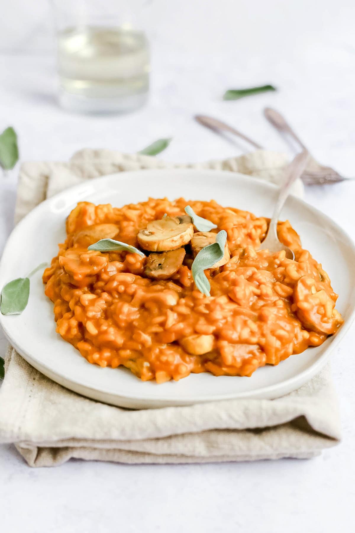 - Fall flavors and vibrant color - Pumpkin and sage is such a delicious flavor combo. Pumpkin is slightly sweet and sage brings a soft savory touch. Plus, the pumpkin turns this risotto a beautiful shade of orange.
