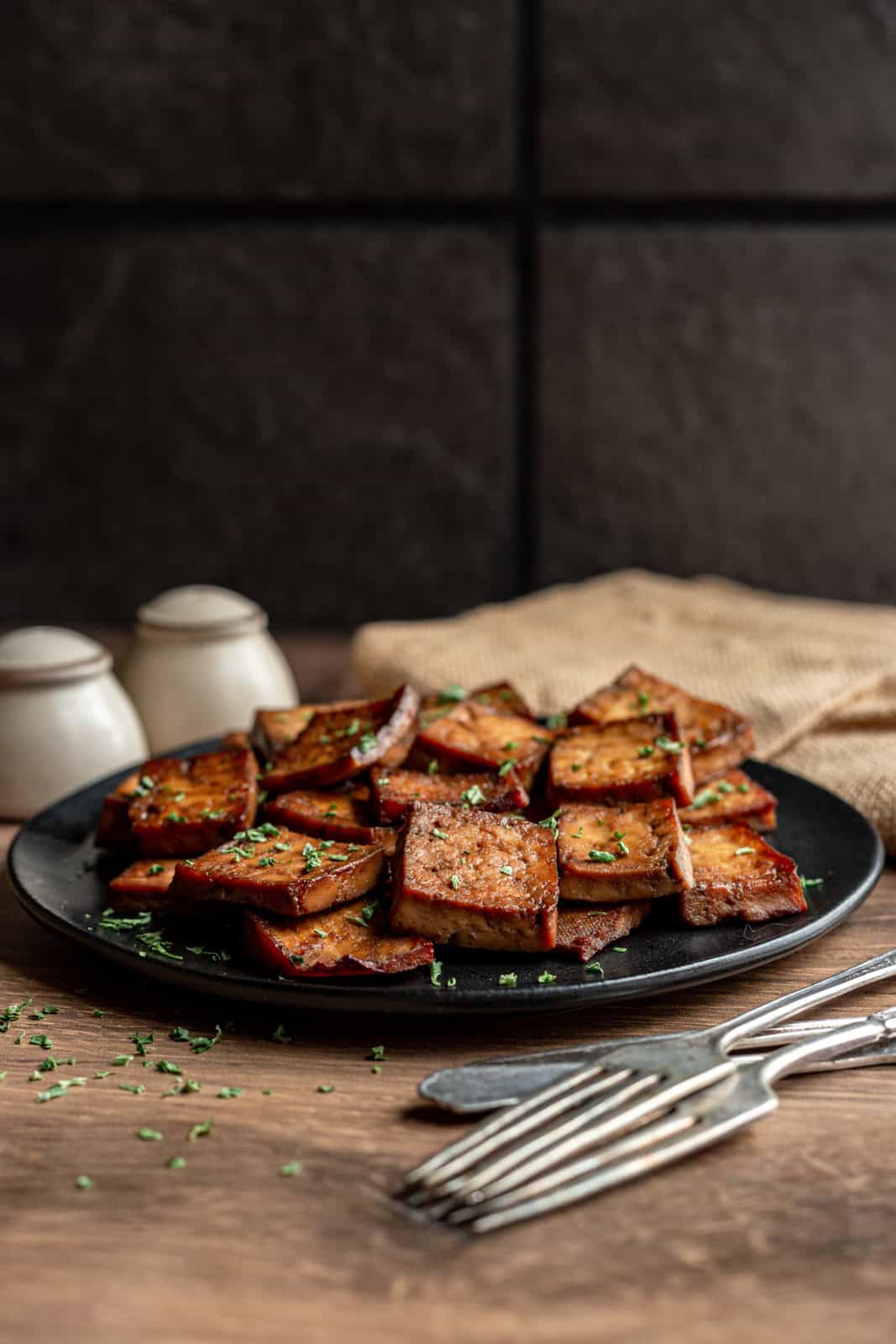 • Four ingredients - this recipe for smoky tofu only has four ingredients! It's not complicated, and the tofu tastes amazing!