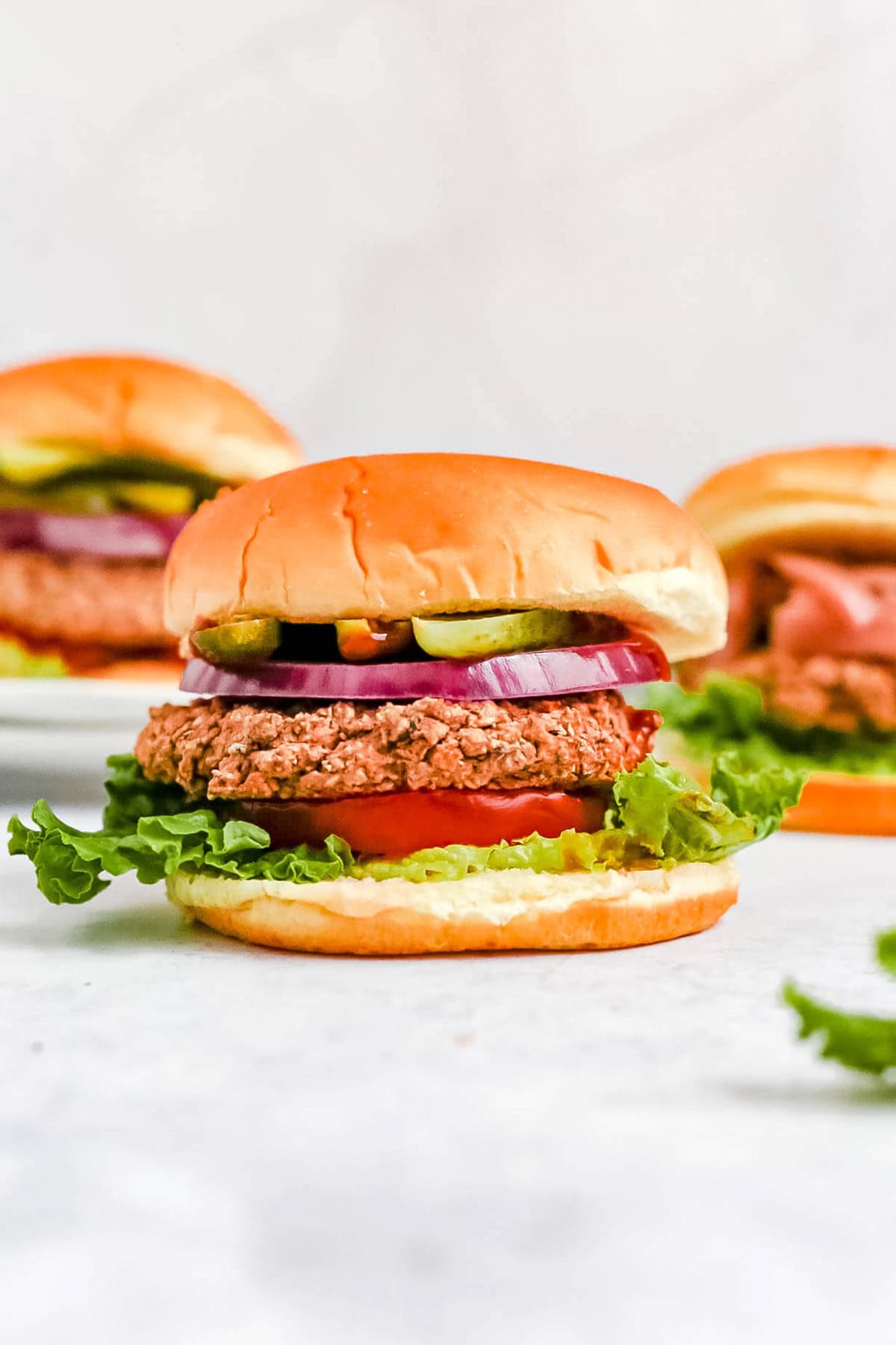 - Serve burgers on gluten-free, vegan buns or on top of lettuce. Top with lettuce, tomato, onion, pickles, mustard, etc. Enjoy!