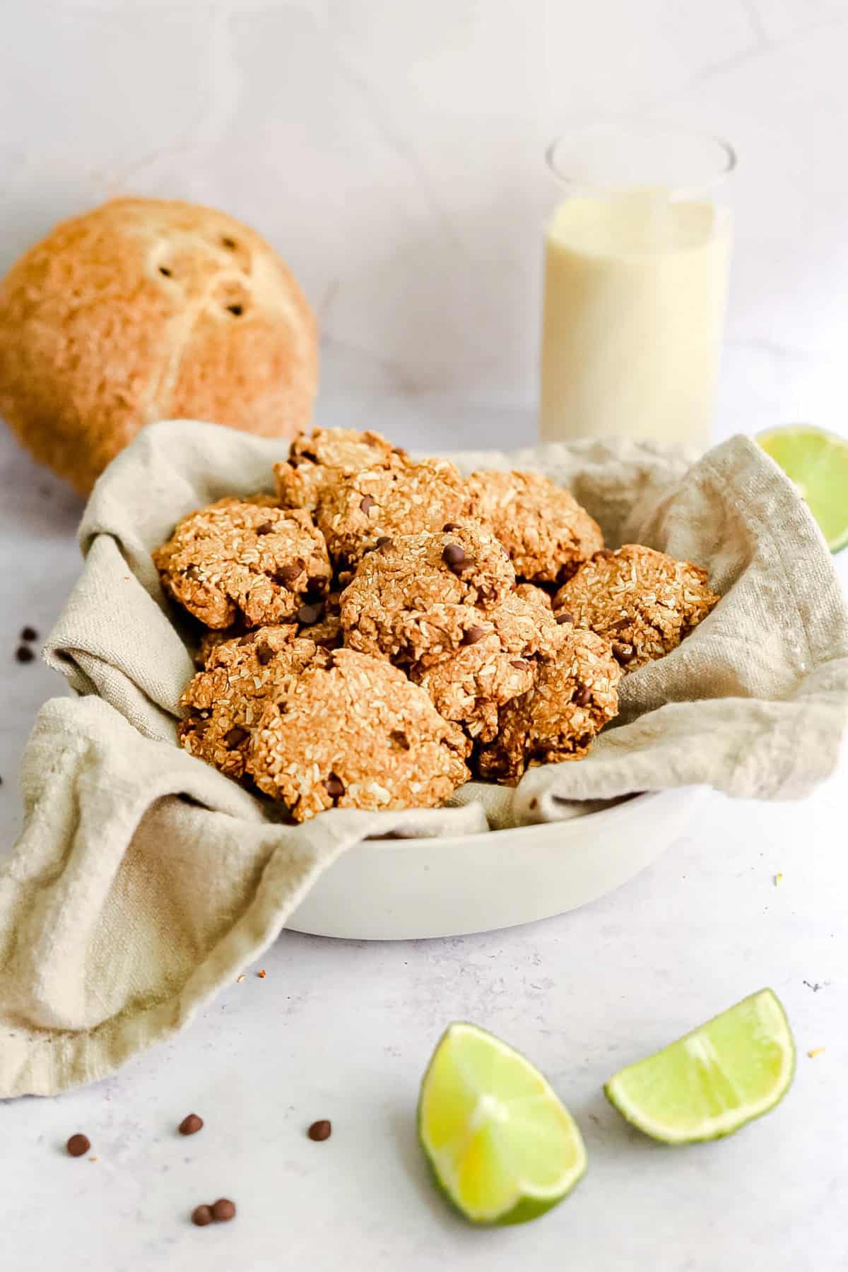 Hi! I'm back with another coconut recipe. Ever since I figured out that the preservatives in store-bought milks don't agree with my system, I've been super into making my own coconut milk. I have all this leftover coconut pulp and I don't want to throw it out. So I'm having fun in the kitchen making yummy recipes. I already shared my Coconut Lime Granola Recipe and now I've got something with chocolate! I hope you're not mad that I have cookies for you 🙂