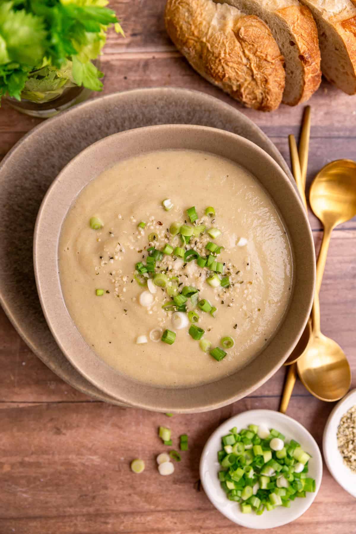 Vegan Celery Soup is a light, yet creamy soup. Made with nourishing vegetables - celery, leeks, and potatoes.