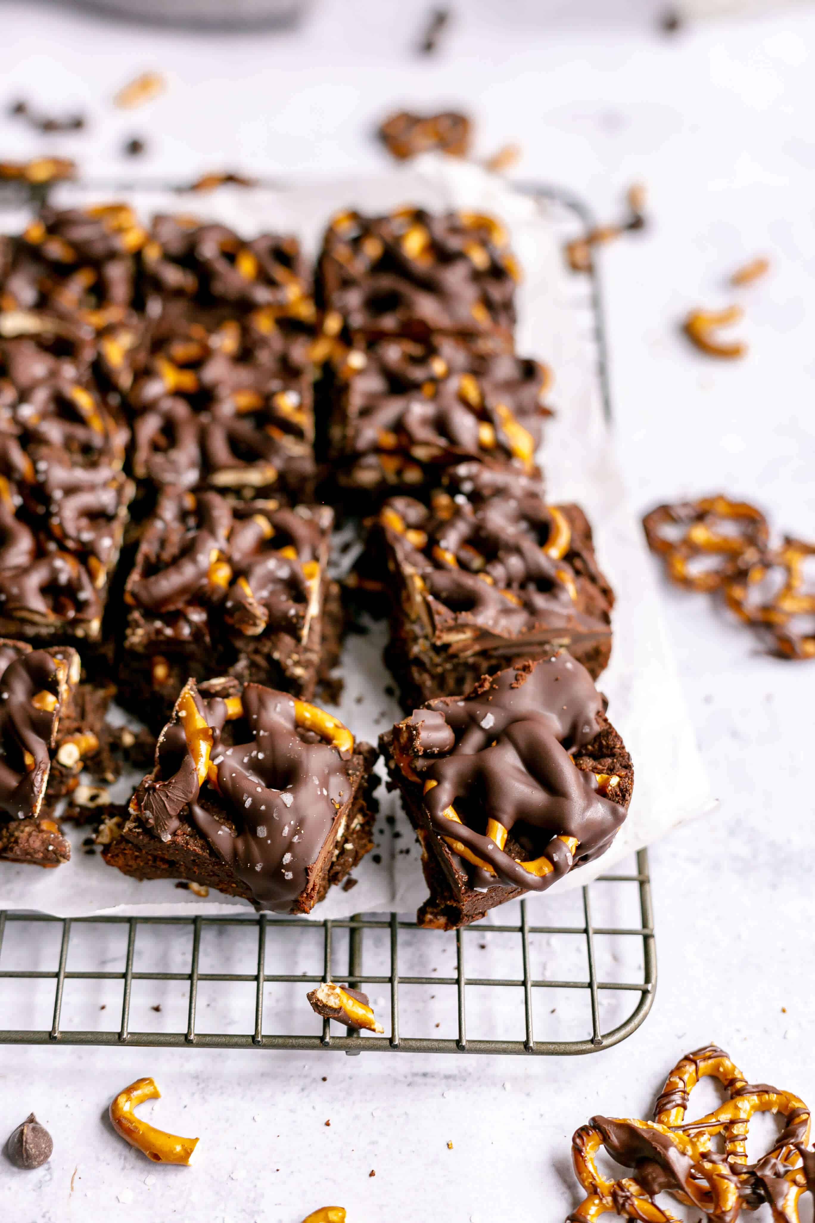 Vegan Chocolate Covered Pretzel Brownies are the perfect mouthwatering salty & sweet combo. These brownies are plant-based and can easily be made gluten-free.