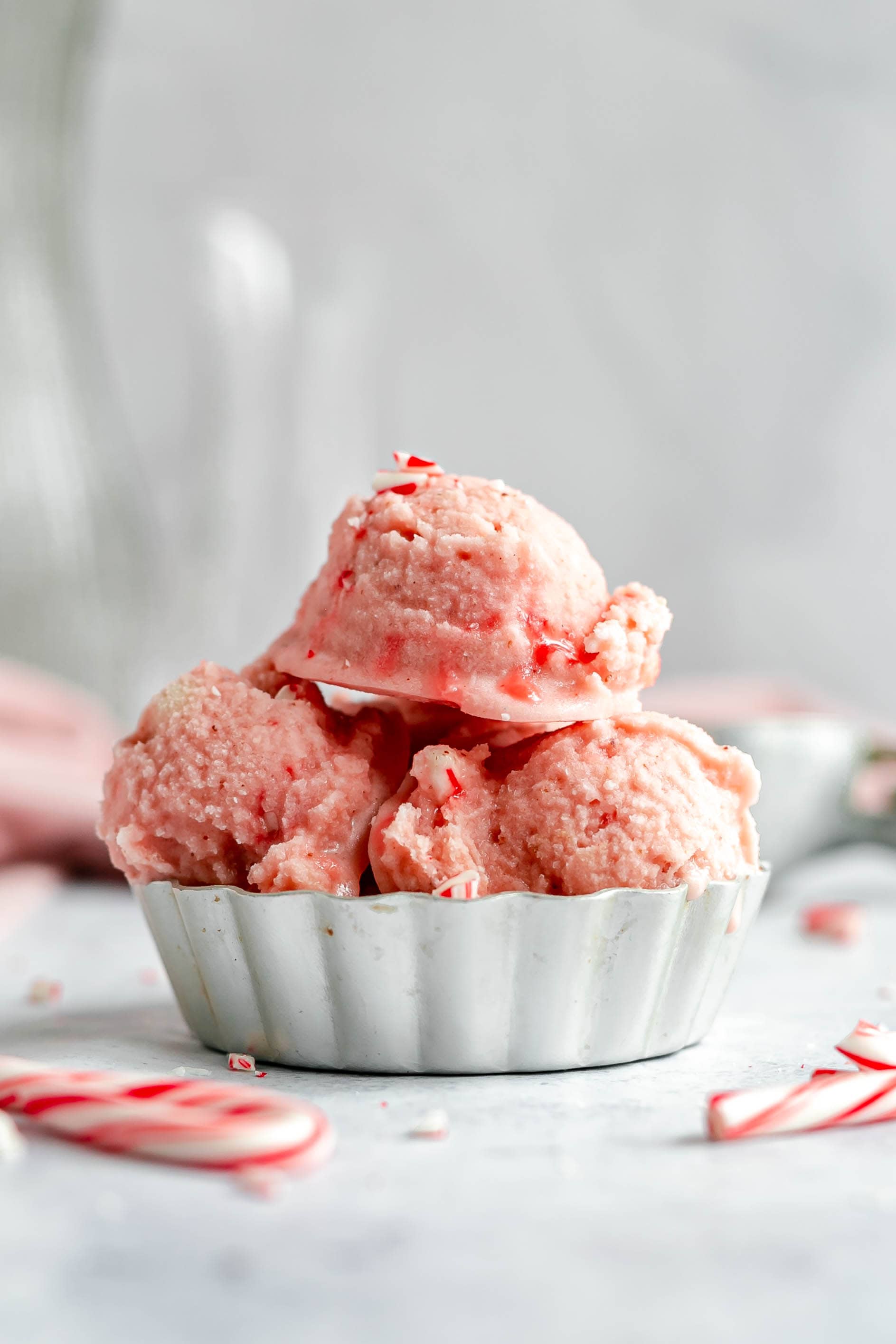 It's vegan and dairy-free. All my recipes are vegan-friendly, of course, but I have to celebrate what a treat it is to eat ice cream that is actually healthy. This ice cream is mostly whole food ingredients, except the candy canes. If you're looking for an option without candy canes, see my note below.