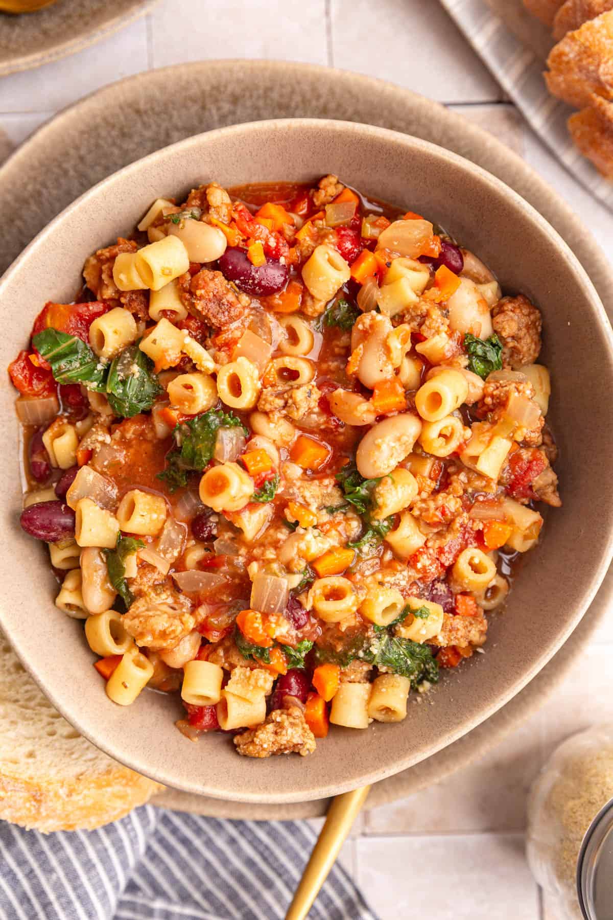 - Flexible and forgiving - the great thing about pasta e fagioli is that you can add your favorite vegetables and beans. Load up on seasonal produce or pick your favorite veggies. This soup will taste delicious any way you make it!