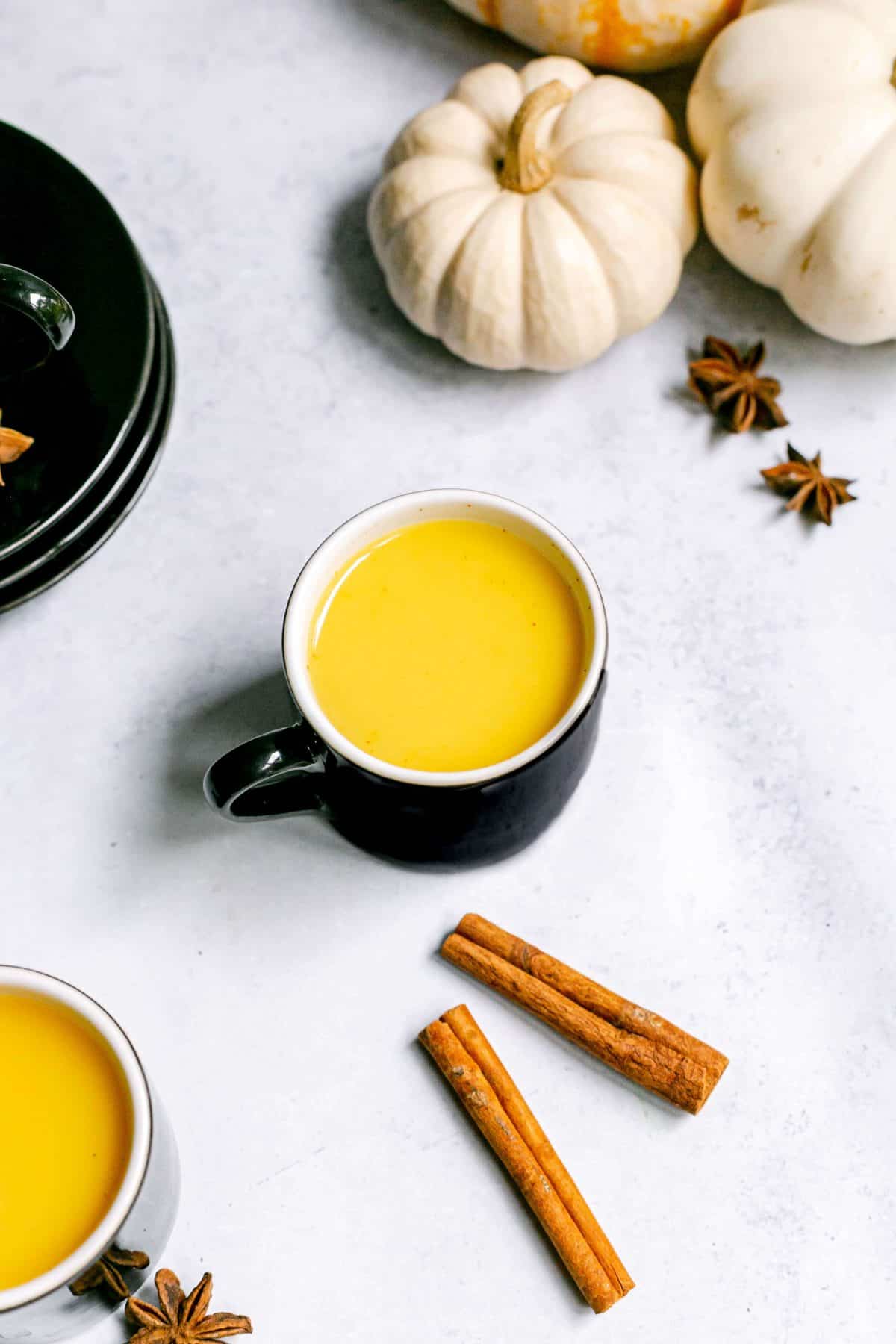 When it's cold outside all I want to do is curl up by the fire with my cat, a good book, and a Vegan Spiced Turmeric Latte. Seriously guys, where did fall go this year? Here in the Midwest, we had like one good week of fall where the weather was beautiful and we could enjoy the pretty fall colors. And then it snowed. Hah. Well at least we can all fill our cold days with Vegan Spiced Turmeric Lattes.