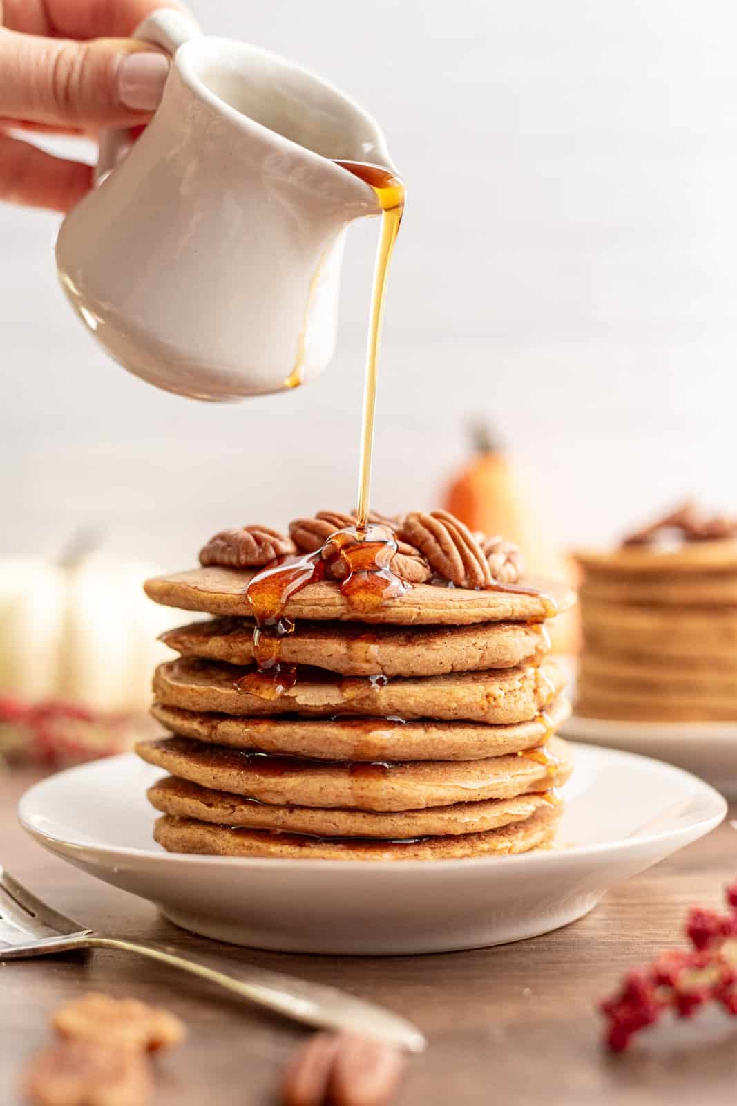 Sweet potatoes and pecans are such a great combination. And a few toasted pecans on top of these pancakes is divine!