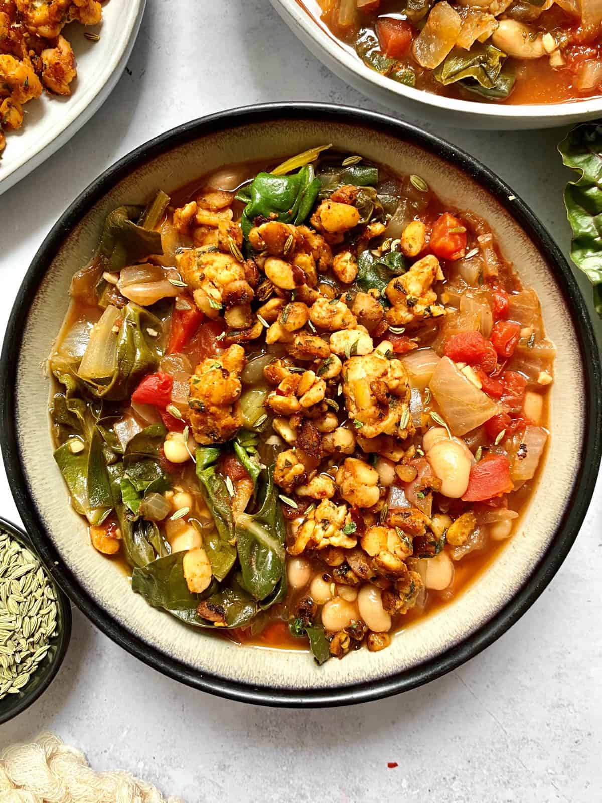 Overall, I'm just in love with this dish. It's like a soup but also a sauce. It's got nutrient-dense beans and greens. Each bowl is packed with plant-protein and flavor.